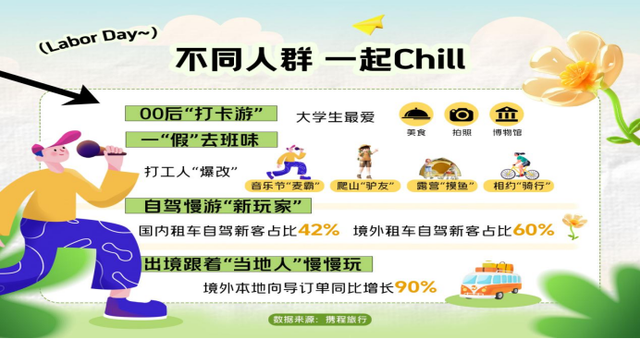 从携程租车数据看,家庭出游占比达45%,预订车型以SUV和商务车为主,房车预订量同比大幅增长近7倍。乡村游预订订单同比增长42%。